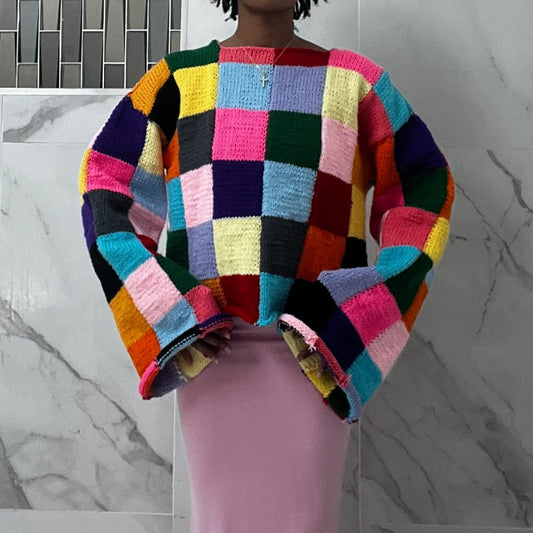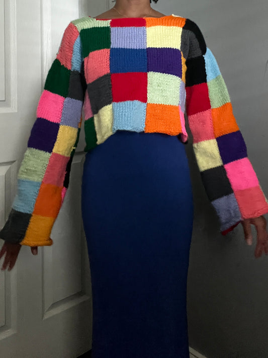 Size Small Handmade Colorful Patchwork Knit Sweater